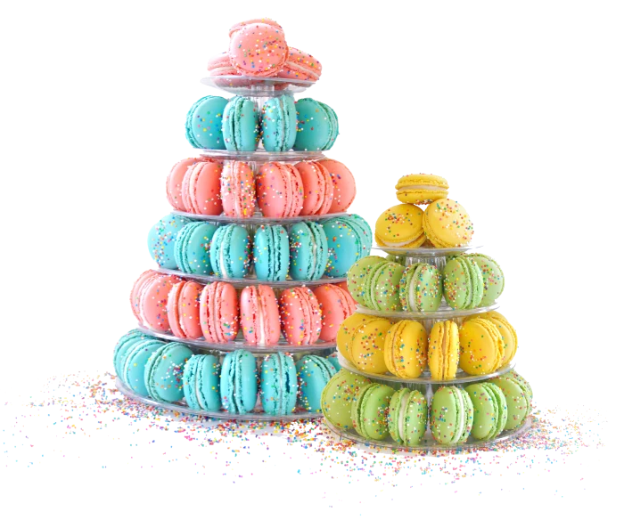 Experience elegance with our stunning macaron towers, an unforgettable alternative to traditional cakes. Easily assembled and customizable, each tower adds simplicity and sophistication to any event.